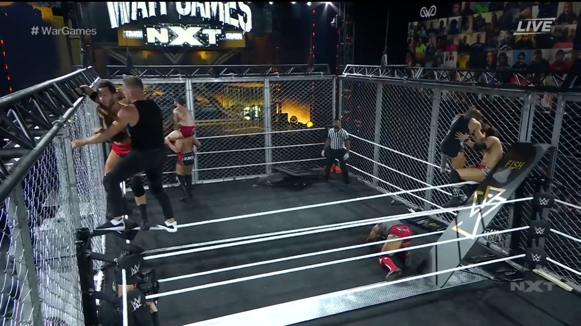 Las superestrellas de NXT chocan dentro de los brutales límites de acero del WarGames Match. ERA indiscutible choca con Pat McAfee, Pete Dunne y los campeones de parejas de NXT Oney Lorcan y Danny Burch. Shotzi Blackheart lleva a su equipo a la batalla contra la amarga rival Candice LeRae y sus cohortes.